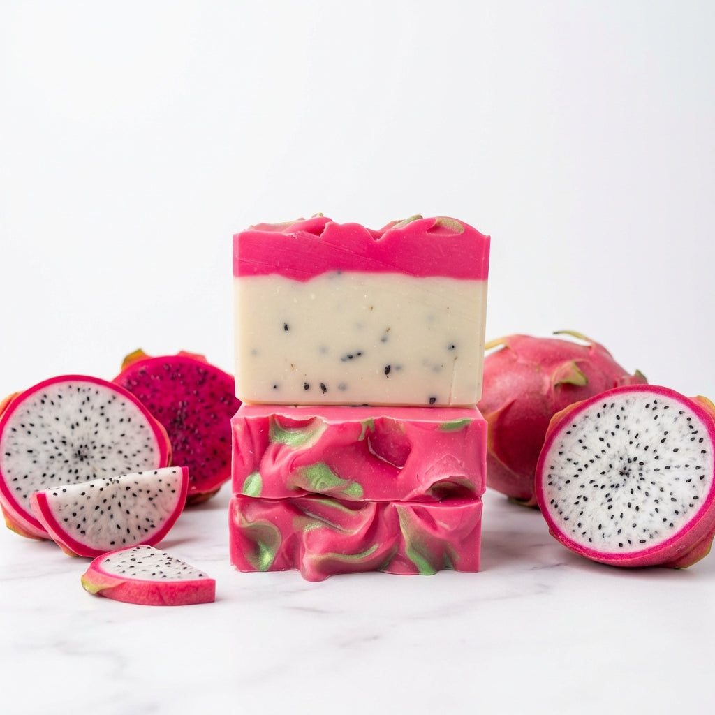 A cheerful, tropical soap scented with juicy dragonfruit and soft hibiscus. Crafted to look like a slice of dragonfruit, this bar is as adorable as it is nourishing. Made with mango seed butter and kokum butter, it creates a rich, creamy lather that leaves skin feeling soft and happy.