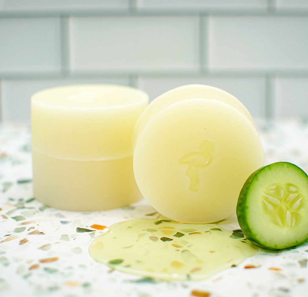 A silky, hydrating conditioner bar made with rice protein, argan oil, and coconut oil to deeply condition and leave hair strong and healthy. Made with pro-vitamin B5 for softness and shine. Lightly scented with cucumber and water lily. Pair with our rice protein shampoo bar!