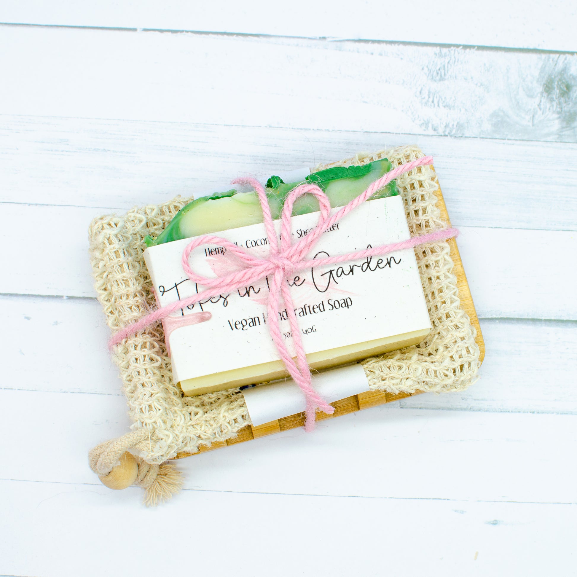 This thoughtful gift includes a luxurious bar of hand-crafted vegan soap, a stylish bamboo soap dish, and a natural cotton sisal soap saver. Everything you need for a soothing, eco-friendly skincare routine, beautifully packaged in one perfect set. Ideal for gifting or indulging in some well-deserved self-care.